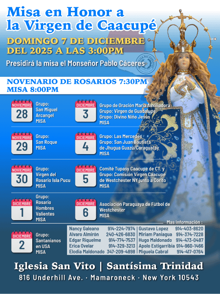 Únete a nosotros para honrar a la Virgen de Caacupé con festividades llenas de corazón y unidad comunitaria en Westchester, Nueva York. Vive la tradición, la fe y la alegría que han inspirado a generaciones desde 1997.